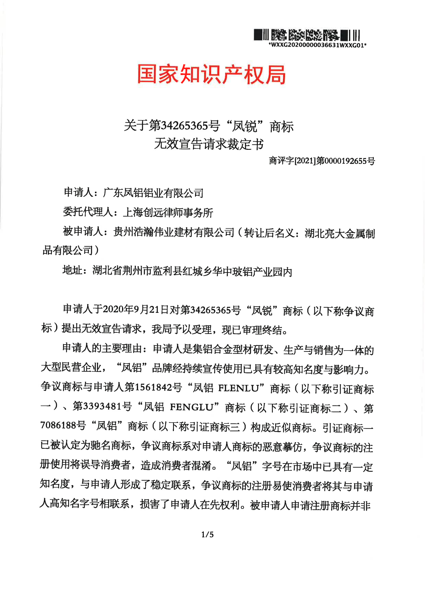 崇左辉知队 | 国家知识产权局:“凤锐”商标无效