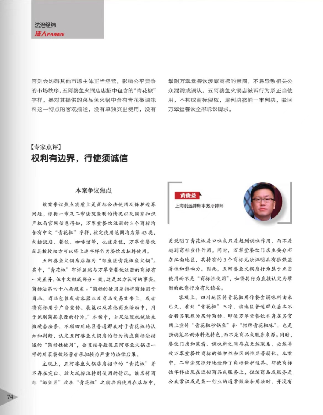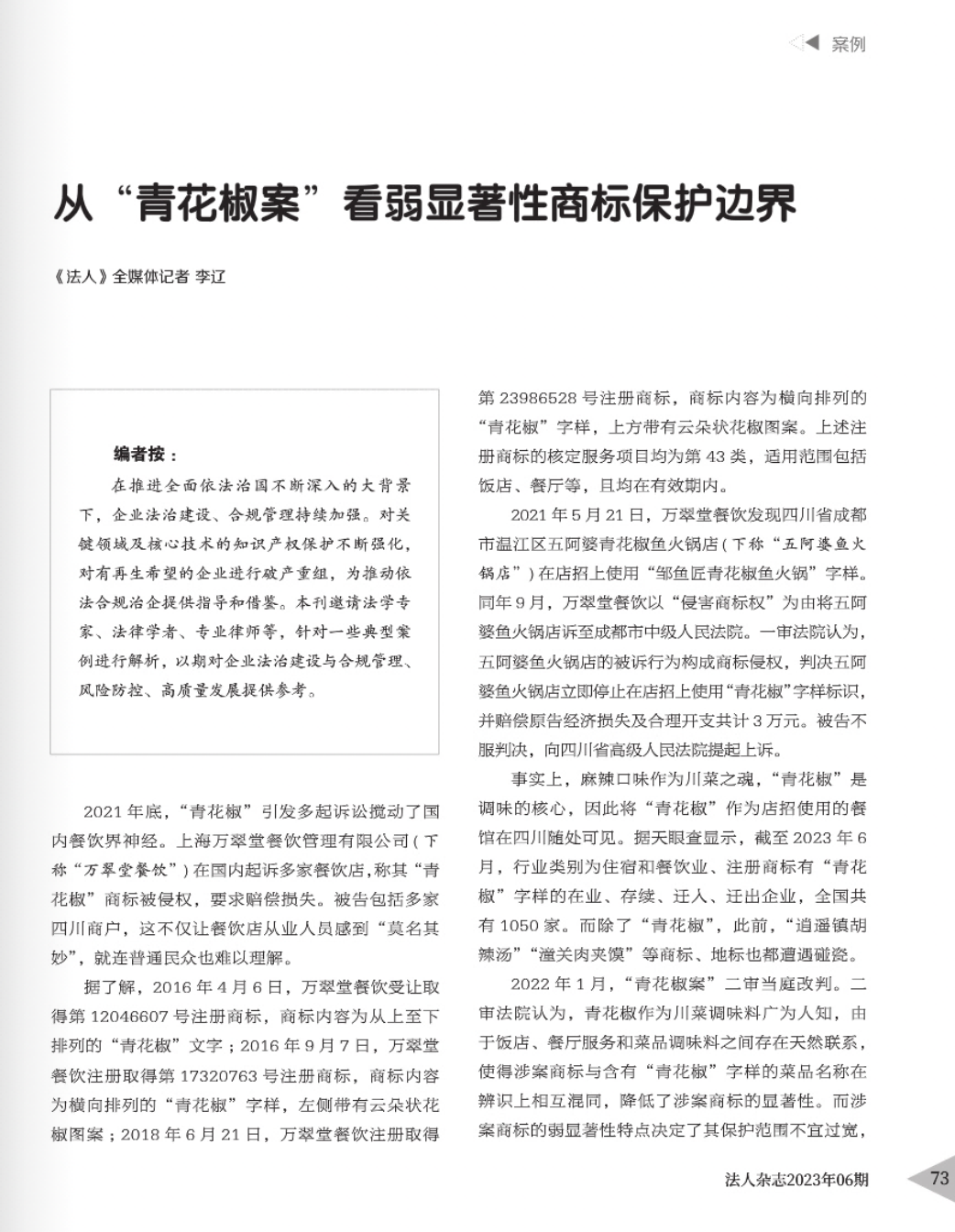 崇左辉知简讯 | 辉知队黄俊益律师应“法治日报”旗下杂志邀请,就“青花椒”案发表专家点评
