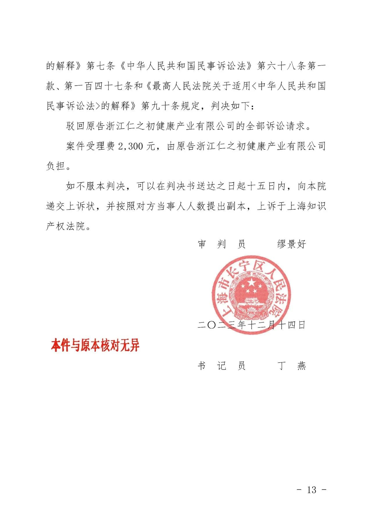 崇左辉知胜诉佳讯 | “仁之初健康”著作权及不正当竞争纠纷案,法院:驳回全部诉讼请求!